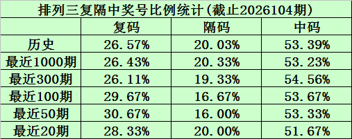 上期回顾:排列三第2026104期奖号为:786。大小比为3:0,奇偶比为1:2,012路比为1:1:1。
