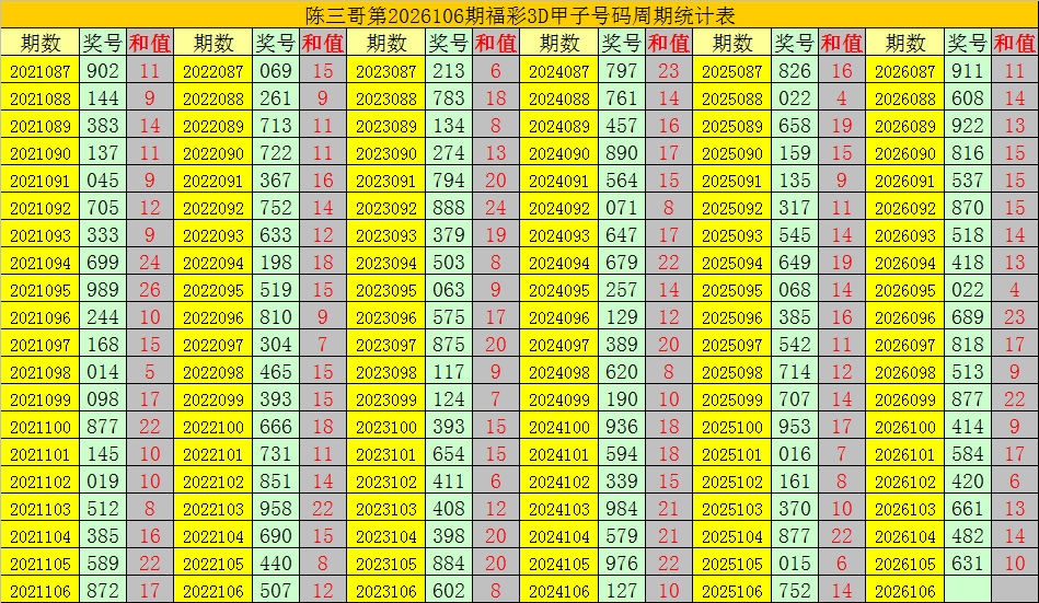 陈三哥3D第2026106期甲子号分析: