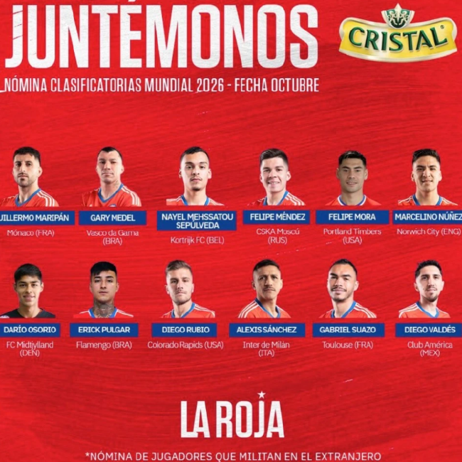 智利国家队公布了他们新一期的大名单,桑切斯领衔,布里尔顿和梅德尔入选,比达尔并未得到征召。