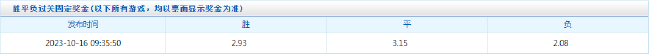 竞彩官方为本场比赛开出了2.93(胜)3.15(平)2.08(负)的赔率组合,本场国足并未受到青睐。半全场玩法中,国足负负的赔率1赔3.55最低,由此可见国足上半场就丢球的可能性还是不小的。比分玩法中,双方1-1战平1赔6最低,国足0-1输球和1-2输球的赔率分别为7.25和8.5,国足赢球比分的赔率中最低的是1-0的1赔9,想要打出有一定难度。