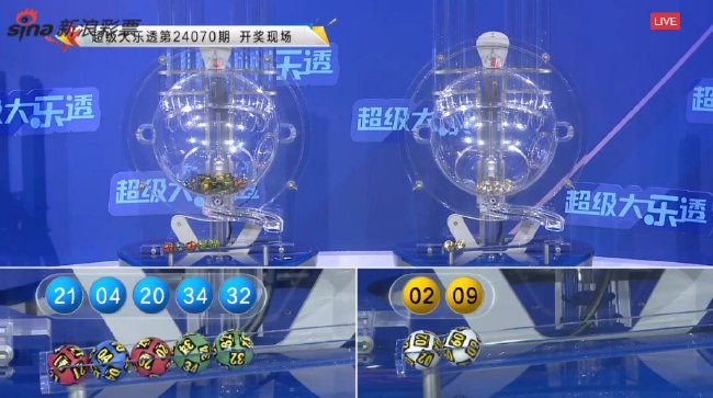 北京时间6月19日晚,体彩大乐透第24070期开奖,当期开奖号码为:前区04 20 21 32 34 ,后区02 09。