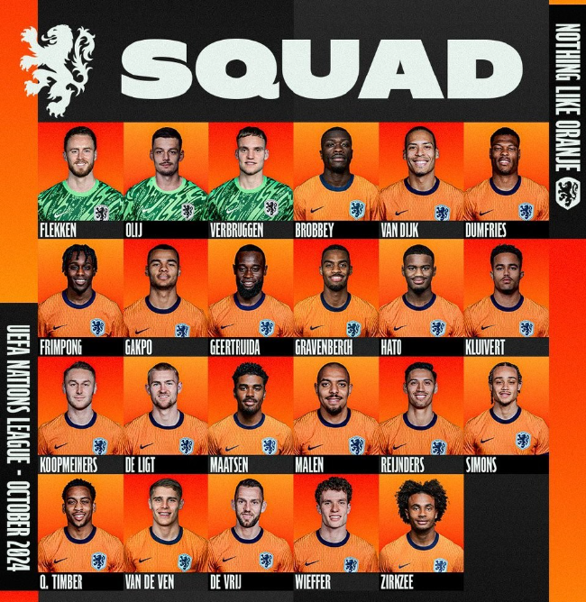 荷兰国家队官方公布了10月份欧国联大名单,范戴克领衔,德利赫特、齐尔克泽在列。10月份欧国联,荷兰队将先后对阵匈牙利和德国。