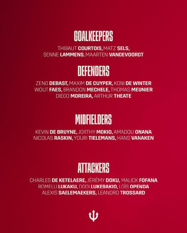 北京时间5月21日,比利时队官方公布了新一期的大名单,这是鲁迪-加西亚上任之后公布的第一期大名单,德布劳内和卢卡库领衔,库尔图瓦入选后因背部伤势退出。