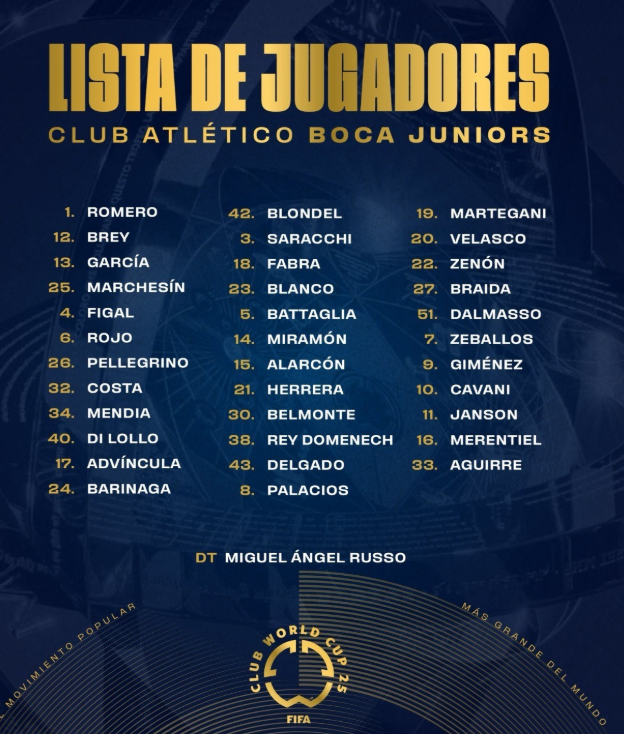 博卡青年世俱杯大名单